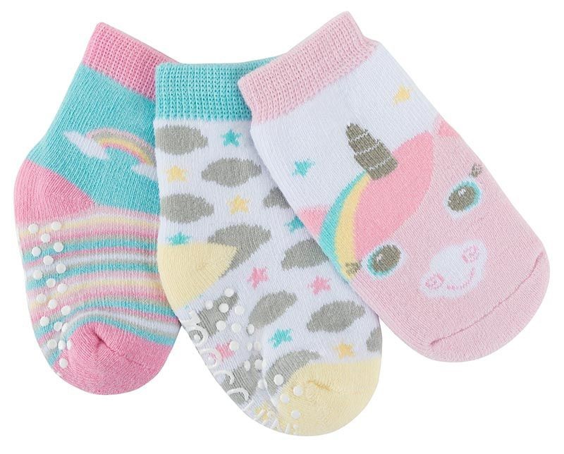 Weiche Anti-Rutsch-Söckchen mit Gumminoppen für sicheren Halt. Kuschelig warm und im praktischen 3er Set für Babys von 0–24 Monaten.
