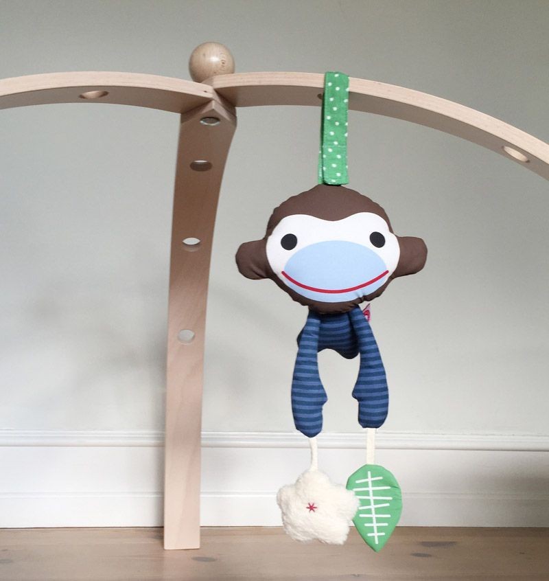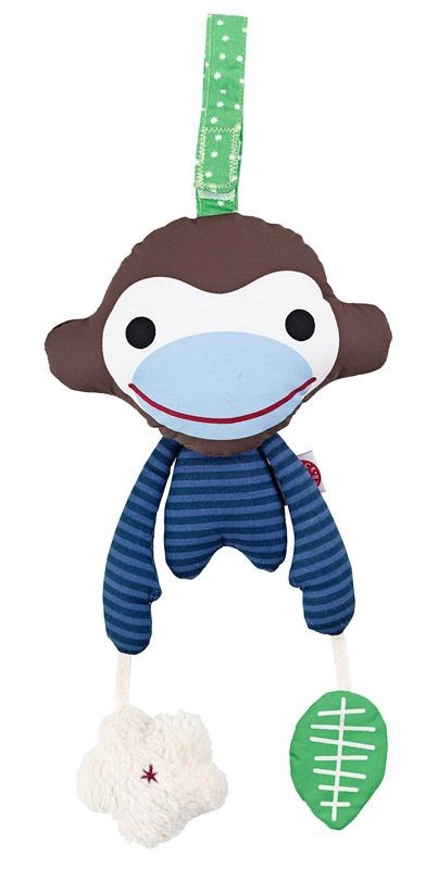 Affe Asger lässt sich mit dem Klettverschluss am Kopf ganz praktisch an der FRANCK & FISCHER Baby Spyder, dem Bettchen oder am Kinderwagen befestigen und sorgt somit für Spaß wenn Ihr Kind auf dem Rücken liegt. Ein Blatt mit gefüllter Knisterfolie und eine Blume gefüllt mit einer Rassel, hängen an Schnüren herunter erregen so zusätzlich Aufmerksamkeit beim anfassen und fördern die akustische und sensorische Wahrnehmung.