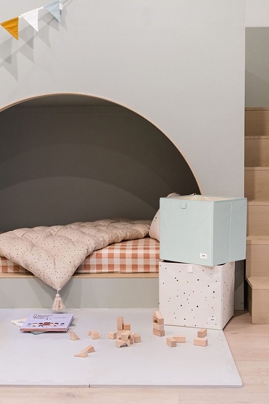 Die Aufbewahrungsboxen von 3 Sprouts sind die perfekte Organisationshilfe, da sie viel zusätzlichen Stauraum bieten. Die Farben sind sanft und harmonisch, so dass sich die Boxen einfach für jeden Raum im Haus eignen. Spielzeug, Kleidung, Bürobedarf, alles lässt sich darin gut verstauen. Durch kartonverstärkte Seiten stehen sie frei im Raum und mit der einfachen Falttechnik, lassen sie sich flach zusammenlegen, wenn sie nicht gebraucht werden. Dank der quadratischen Form passen sie in die meisten handelsüblichen Regale und werden zum Blickfang in jedem Raum. Zudem sind die Boxen aus recyceltem Polyester gefertigt, so dass Ressourcen geschont werden. Endlich einen festen Platz für all unsere Lieblingsstücke und für die unserer Kinder natürlich auch.
