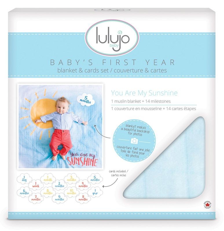 lulujo Baby’s First Year™ Set mit weichem Musselin-Swaddle (100 x 100 cm) und 14 Fotokarten. Vielseitig nutzbar als Decke, Spucktuch, Stilltuch und mehr. Stylische Prints und Designs machen jeden Moment im ersten Jahr unvergesslich.
