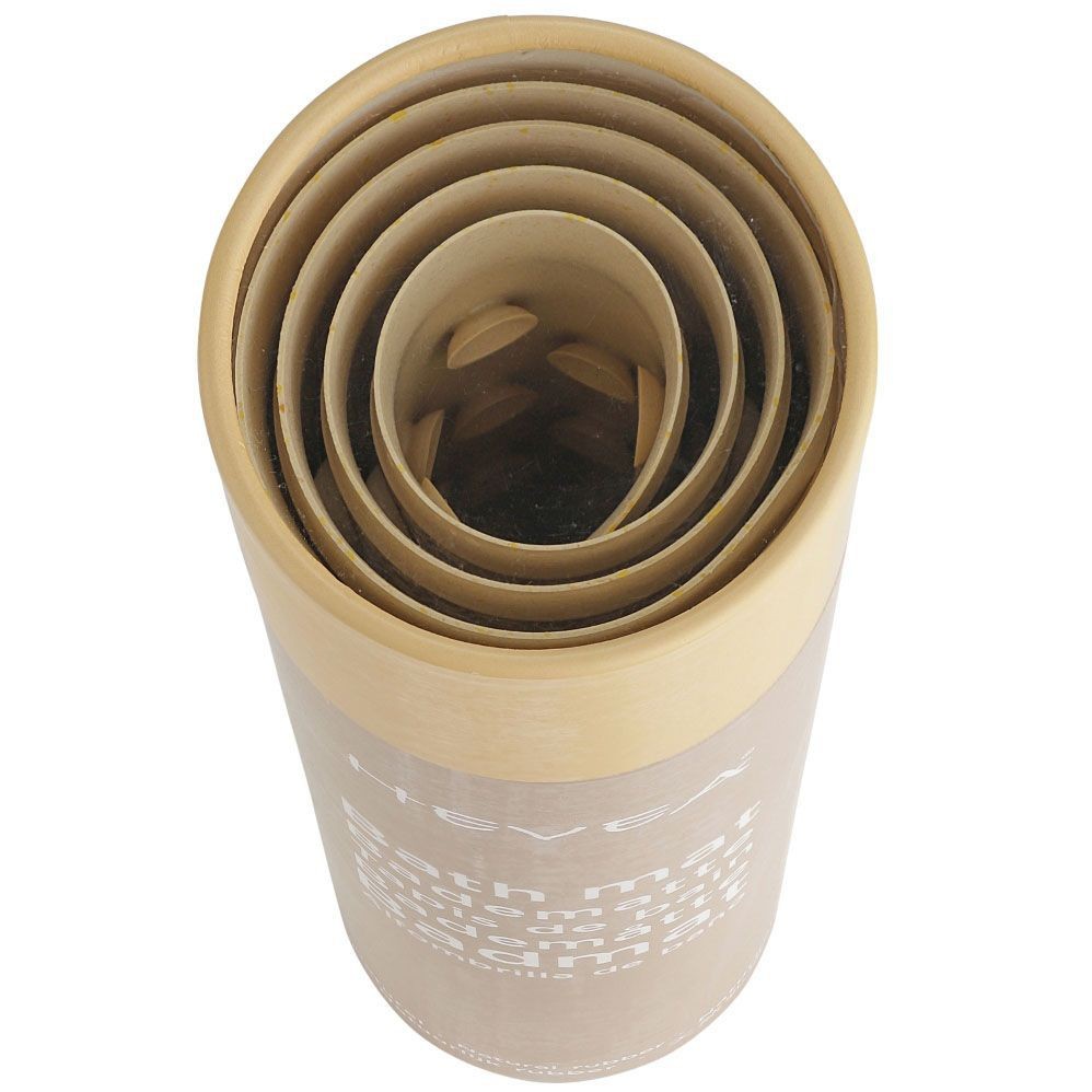 Die Badewanneneinlage aus der Upcycling-Kollektion wird aus überschüssigem oder ausgeschnittenem Material hergestellt, das bei der Produktion der Naturkautschukprodukte entsteht. Es handelt sich um qualitativ hochwertigen Naturkautschuk des Kautschukbaumes Hevea Brasiliensis. Durch die Wiederverwendung wird Abfall vermieden und im Sinne von HEVEAs Firmenphilosophie der grüne Fingerabdruck gefördert. Die Herstellung erfolgt nachhaltig, umweltfreundlich und mit hoher sozialer Verantwortung. Dadurch dass keine künstlichen Stoffe hinzugefügt wurden und die verwendeten Farben auf Mineralien basieren, sind die Badewanneneinlagen vollständig biologisch abbaubar. Die Verpackung besteht aus FSC®-zertifiziertem Material.