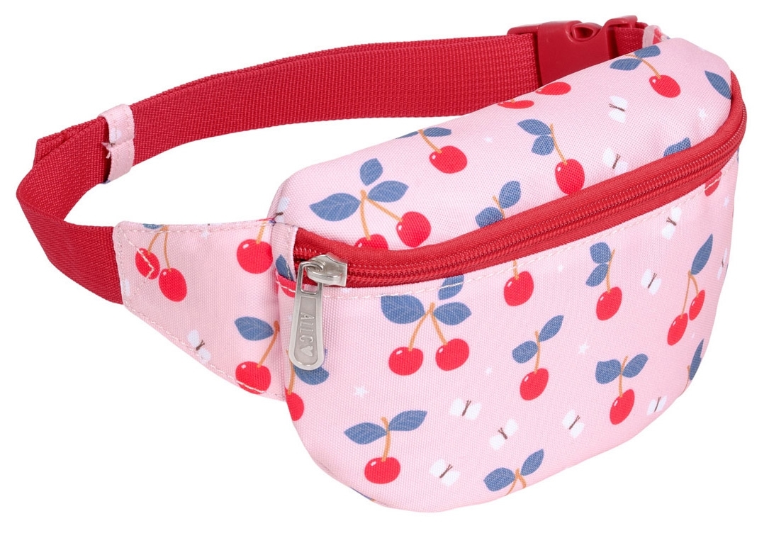 Kinder-Bauchtasche mit Kirschmotiv, verstellbarem Gurt & zwei Reißverschlussfächern. Perfekt für Ausflüge, Schule & Alltag – kombinierbar mit passendem Zubehör.