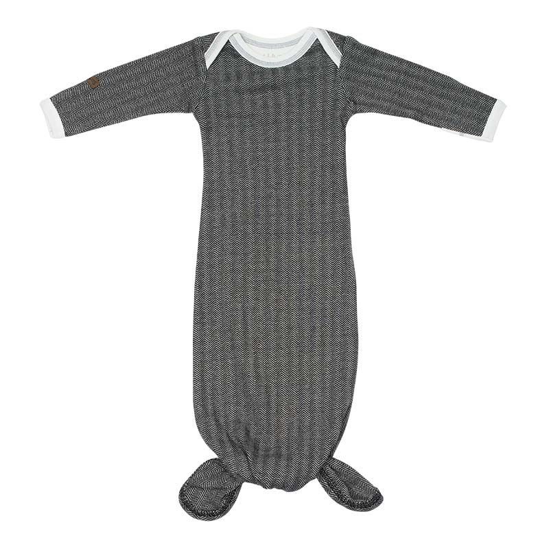 Die vorgewaschene, hochwertige und zertifizierte Bio-Baumwolle ist weich und besonders anschmiegsam für einen tollen Tragekomfort. Kurz nach der Geburt ziehen die Babys gerne noch die Beinchen an, wollen aber trotzdem schon Bewegungsfreiheit – der kleine, kuschelige Schlafrock (Nightgown) bietet ihnen beides zugleich. Die Enden der Ärmelchen können einfach umgeklappt werden, um als Kratzfäustlinge zu dienen. Der einfache Halbknoten am Fußende ermöglicht einen schnellen Windelwechsel und verwandelt das Baby in eine süße kleine Robbe. Das klassische Fischgrätmuster in modernen Farben ist absolut trendy. Diese Kollektion ist für jeden Kanada-Fan einfach ein Muss!