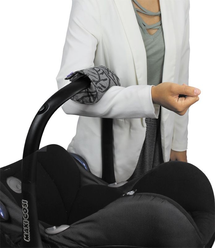 Ein kleines Polsterkissen, welches mit Klettverschluss am Bügel der Babyschale befestigt wird und somit das typische Tragen der Babyschale in der Armbeuge erleichtert und bequemer macht. Das Kissen polstert angenehm weich und verhindert Schmerzen in der Armbeuge auch bei längeren Wegen.