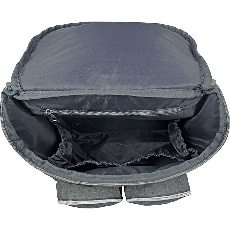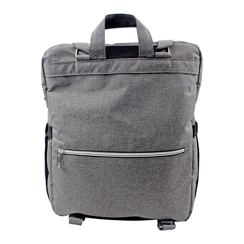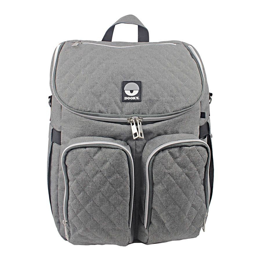 Der Dooky Wickelrucksack 2-in-1 in Grau meliert ist stylisch, funktional und vielseitig – mit großem Hauptfach, isolierten Fläschchenhaltern, Wickelunterlage und praktischen Befestigungsschlaufen für unterwegs.