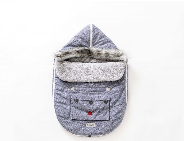 Das kanadische Label Juddlies überzeugt einmal mehr mit durchdachtem Design und modernem Stil. In einem schlichten Salt & Pepper Grey gehalten, passt dieser Fußsack zu nahezu jedem Kinderwagenmodell. Damit der Kuschelfaktor lange erhalten bleibt, solltest du den Kunstpelz vor dem Waschen abnehmen und die Pflegeanleitung beachten: kalt im Schonwaschgang waschen, nur bei niedriger Temperatur trocknen und keinesfalls bügeln oder chemisch reinigen.