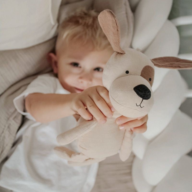 Alter: ab GeburtMotiv: HundFarbe: BeigeMaterial: 100% Baumwolle, Füllung: 100% PolyesterMaße: 12 x 28 x 8 cm Gewicht: 0,070 kg