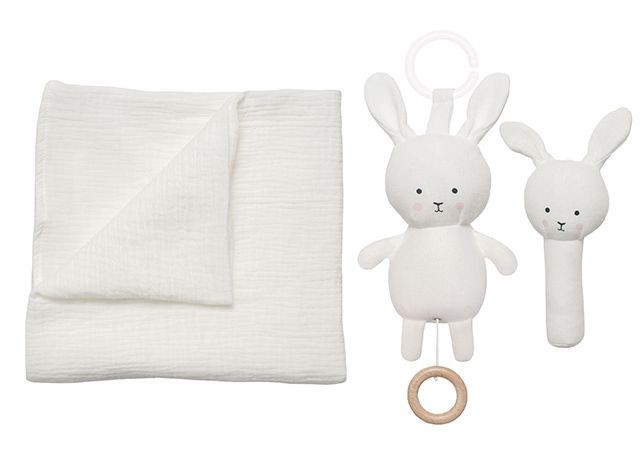 Geschenkset mit Babydecke/Spieluhr/Rassel Bunny / Weiß