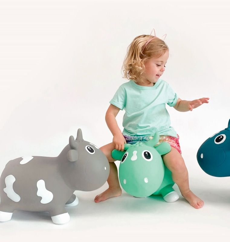 Weiche Hörner und Ohren bieten sicheren Halt beim Springen, und die Sitzhöhe von ca. 23 cm ist perfekt für Kleinkinder ab 12 Monaten 👶. Egal ob auf glattem Boden oder Teppich – das Hüpftier ist ein treuer Spielkamerad und ein echter Blickfang mit Retro-Charme.
