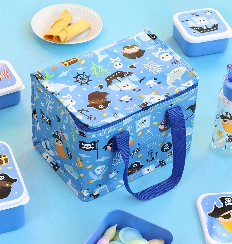 Leichte, isolierte Kinder-Kühltasche im Piraten-Design – hält Snacks & Getränke unterwegs frisch. Aus recyceltem Material, leicht zu tragen & einfach zu reinigen.