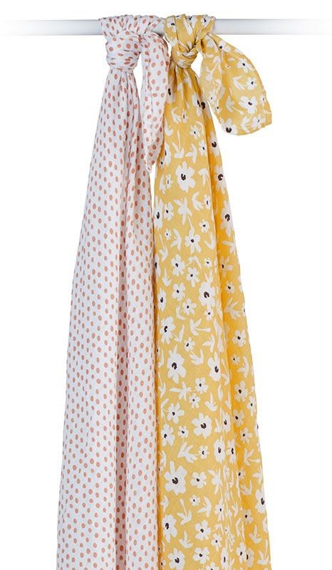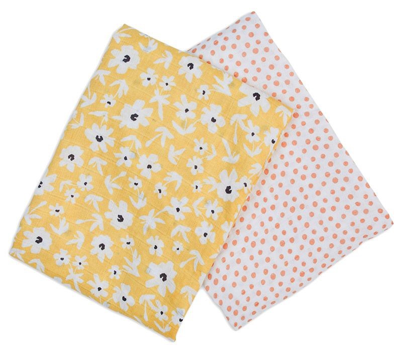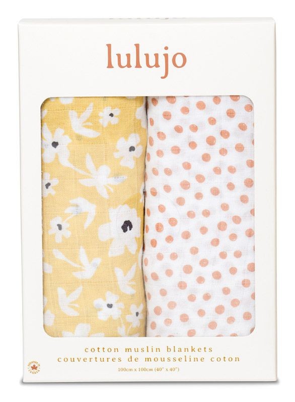 lulujo – Mulltuch / 2er Set / Baumwolle / Yellow Wildflowers + Dots