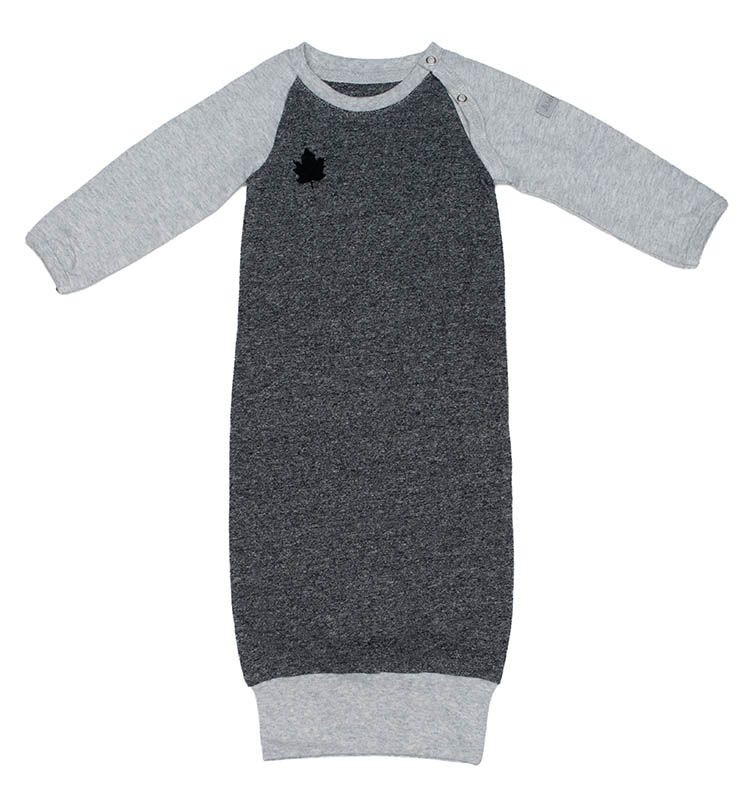 Die vorgewaschene, hochwertige und zertifizierte Bio-Baumwolle ist weich, besonders anschmiegsam und bietet einen tollen Tragekomfort. Kurz nach der Geburt ziehen die Babys gerne noch die Beinchen an, wollen aber trotzdem schon Bewegungsfreiheit – der kleine, kuschelige Schlafrock (Nightgown) bietet ihnen beides zugleich. Die Enden der Ärmelchen können einfach umgeklappt werden, um als Kratzfäustlinge zu dienen. Die Öffnung unten ermöglicht einen schnellen Windelwechsel und zwei Druckknöpfe erweitern den Halsausschnitt für ein bequemes An- und Ausziehen. Das sportliche Design in modernen Farben ist absolut zeitlos. Ein kleines Ahornblatt als Logo ziert den süßen Schlafrock. Diese Kollektion ist wunderbar für den Baby-Alltag.