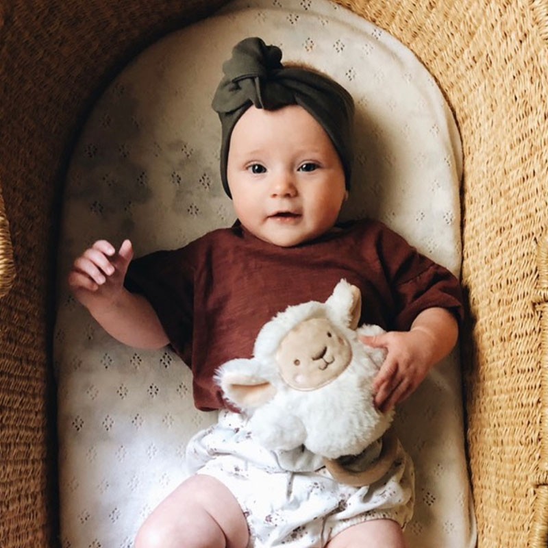 Diese Rassel ist einfach unwiderstehlich niedlich und ein großartiges erstes Spielzeug. Es fördert die motorischen Fähigkeiten und der Holzring hilft Babys Zahnungsschmerzen zu lindern.