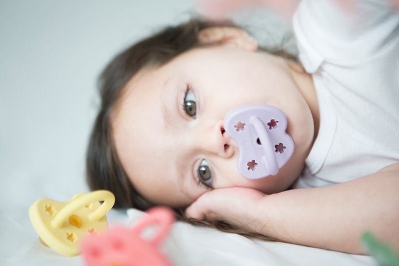 Der HEVEA Schnuller in Dusty Violet – eine schöne, sanfte Farbe für Neugeborene.