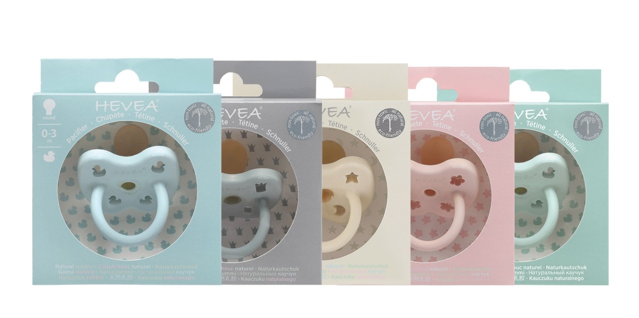 Bitte beachten Sie! Hevea Schnuller bestehen zu 100 % aus Naturkautschuklatex, der mit der Zeit nachdunkelt.