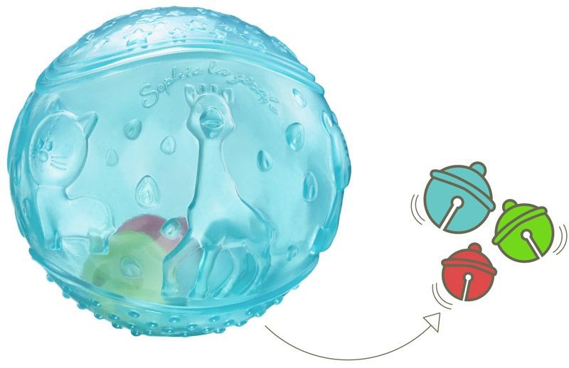 Eine strukturierte Oberfläche zum Stimulieren des Tastsinns und bunte Glöckchen im Inneren zum Schütteln für die Entwicklung von Babys Seh- & Hörsinn.