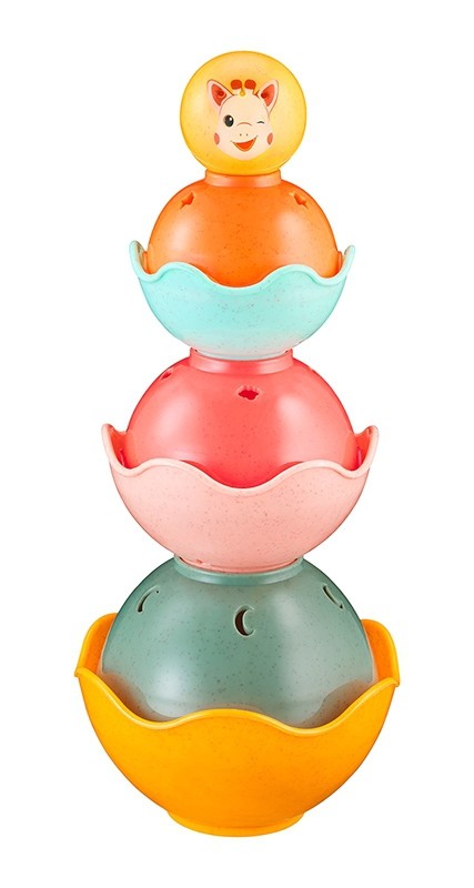 Die 6 leichten Stapelschalen helfen die Koordination und Feinmotorik zu schulen. Sie sind leicht und für kleine Hände gut zu greifen. Das Baby kann Pyramiden bauen und dabei viel Spaß haben. Ab einem Alter von 6 Monaten kann es die Tiere und hervorgehobenen Zahlen am Boden der Schalen erforschen und betasten. Ab 8 Monaten kann Ihr Baby in der Badewanne die Schalen mit Wasser füllen und sich Dank der kleinen Schlitze mit dem Wasser begießen, während es den Zusammenhang von Ursache und Wirkung anhand der Begriffe leer/voll lernt. Ab 1 Jahr entwickelt das Baby auf spielerische Weise seine Handgeschicklichkeit beim Spielen und Stecken und lernt die Begriffe groß/klein.
