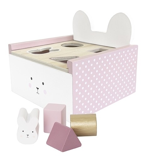 Alter: ab 18 Mon.Motiv: HaseFarbe: Rosa, WeißMaterial: Holz, SperrholzMaße: 14 x 12 x 13 cmGewicht: 0,323 kg