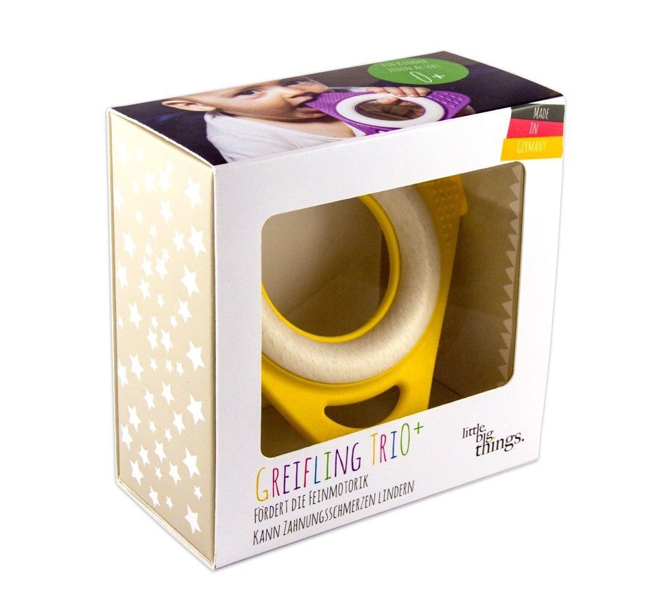 Der Beißring Tri0+ massiert sanft das Zahnfleisch und kann so helfen, den Zahnungsschmerz zu lindern. Das zahnfreundliche, flexible Material mit seinen drei verschiedenen Oberflächenstrukturen sorgt für ein angenehmes Gefühl beim Kauen. Durch den Holzring ist das Beiß- und Greifspielzeug besonders gut zu greifen und festzuhalten. So fördert es auch die motorischen Fähigkeiten.